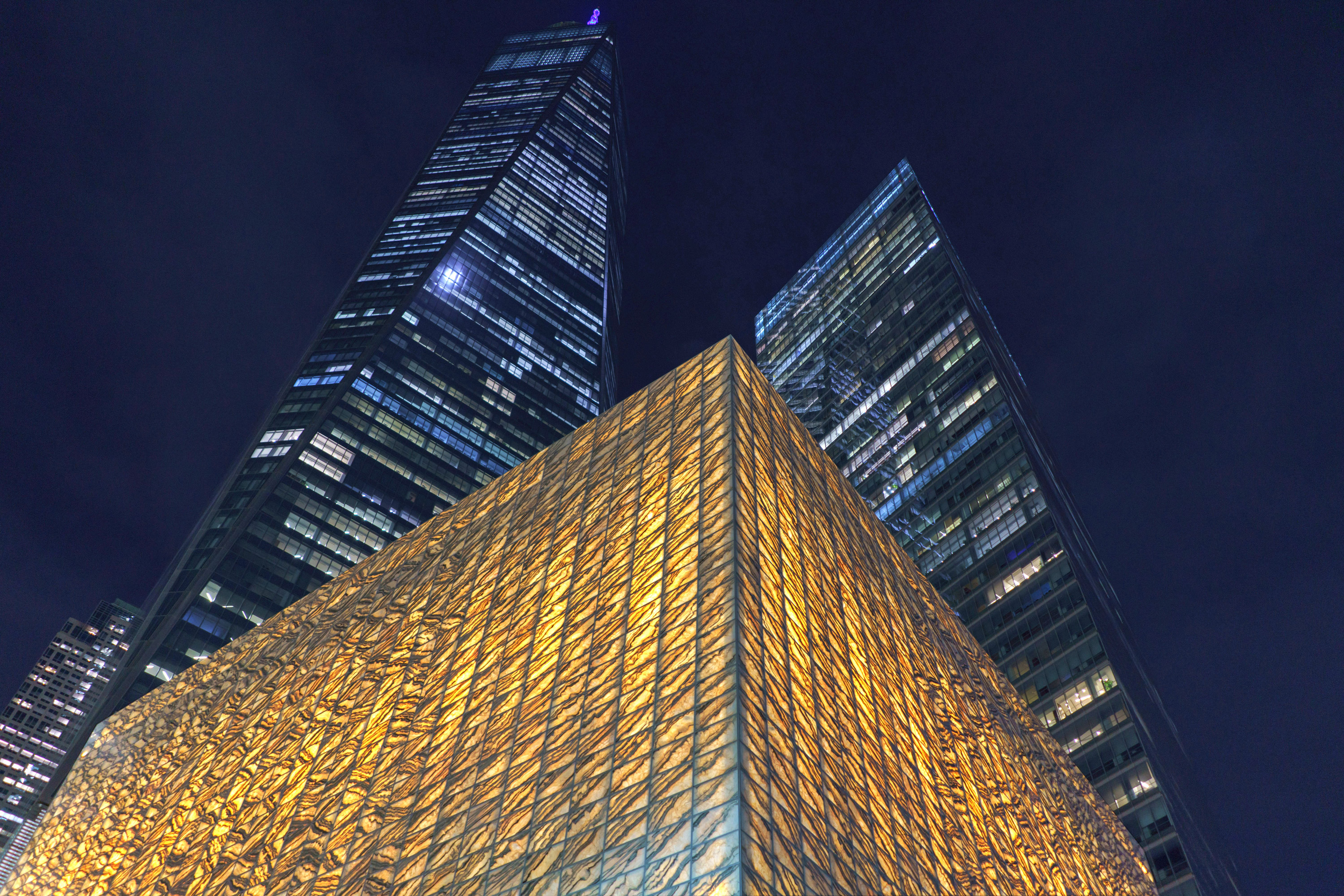 Top photo: The 9/11 Memorial & Museum (foreground) and the Perelman Performing Arts Center (back center) are central to the World Trade Center site.