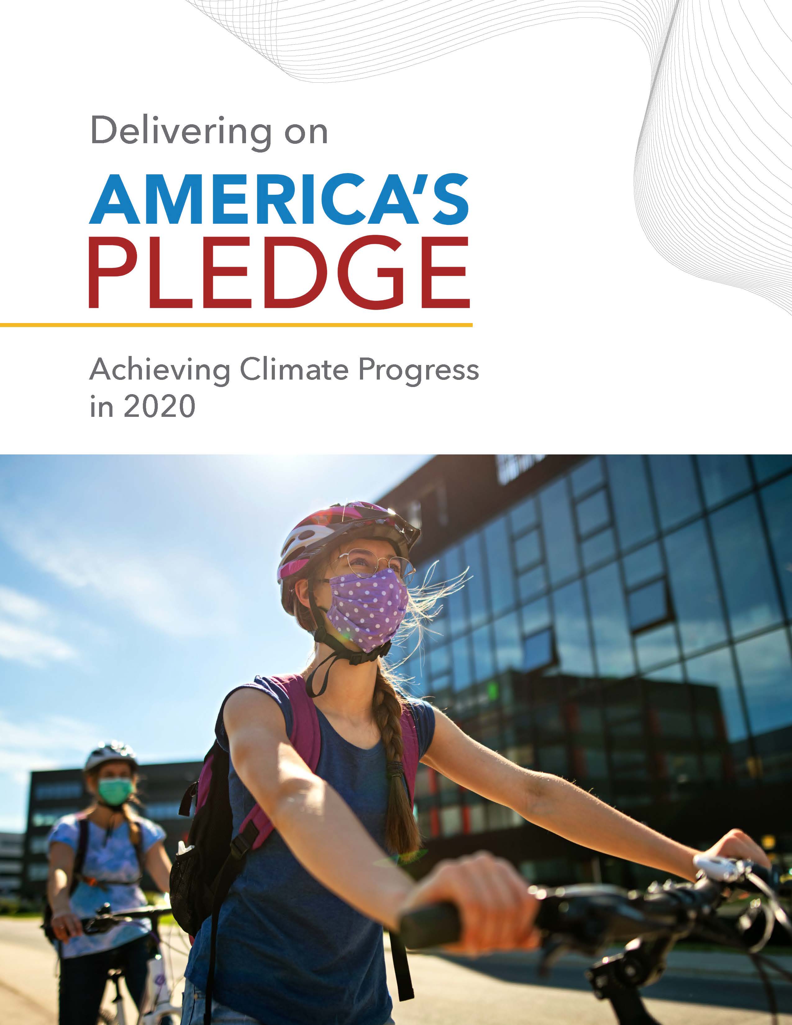 America’s Pledge assesses how states, cities, and businesses are continuing to drive climate progress despite the events of 2020—including the COVID-19 pandemic and economic recession—and increasing our confidence in the country’s ability to achieve the 2030 emissions reductions modeled in accelerating America’s Pledge.